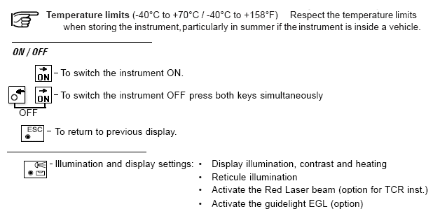 Above Sheet is a general usage chart explaining some of the graphical messages the Leica may display on it's LCD Screen .