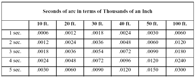 Above chart is an indispensable visualization tool which will help to illustrate the 'real-world' differences between high and low precision equipments . Being able to understand the inherent errors contained in any particular shot is important . A Level or Theodolite or Total Station's optical tolerance is a critical consideration for machine alignment projects .