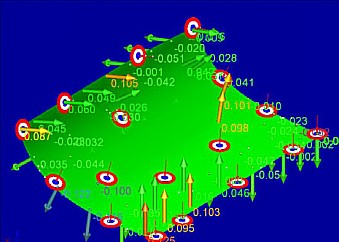 After the shots are taken and the data is gathered the operator can fire up any number of included software programs , on the Laptop computer , and quickly display the data in numerical , as a graph or even in 3D as a point spread or point cloud . The software can indicate which points are within tolerance and which points have to be moved and exactly how much . It can also determine a medium criteria baseline if one hasn't been set , so that only a minimum number of data points will require moving , re-machining or re-adjusting . This kind of versatility and exacting feedback is why Engineers love it , and in fact , it is an Engineering tool as much as a field data gathering tool . Having a FARO has become a prerequisite for even bidding on major installations in many jurisdictions . A FARO offers cold hard evidence about any critical surface , right here and now , unlike what an N3 or T2 operator might "say" is his best estimation . |